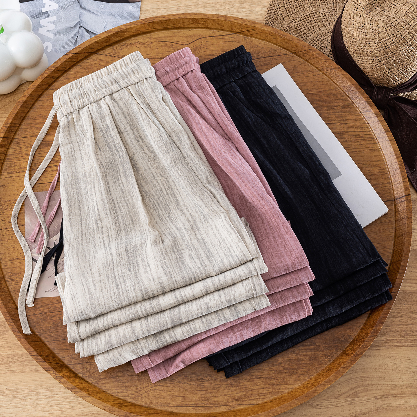 城市衣柜村上春正品费依女裤片段黑色高腰阔腿裤女2025新款夏季薄