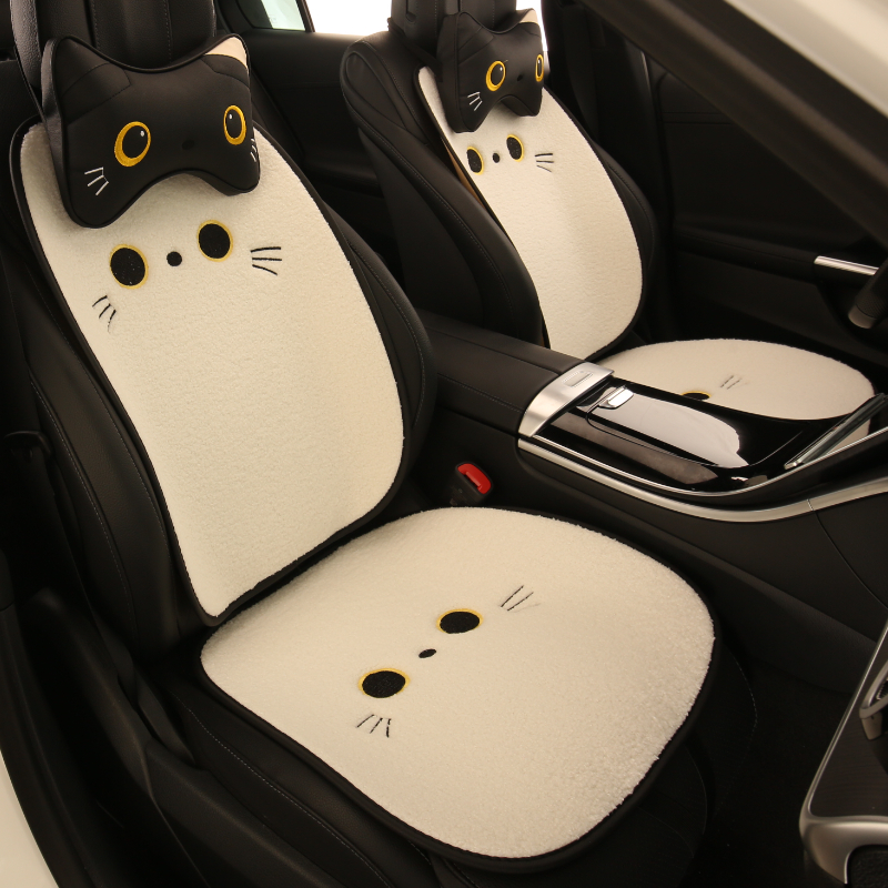 新款汽车坐垫冬季毛绒可爱猫咪座垫高级感车内座椅套保暖女神座套