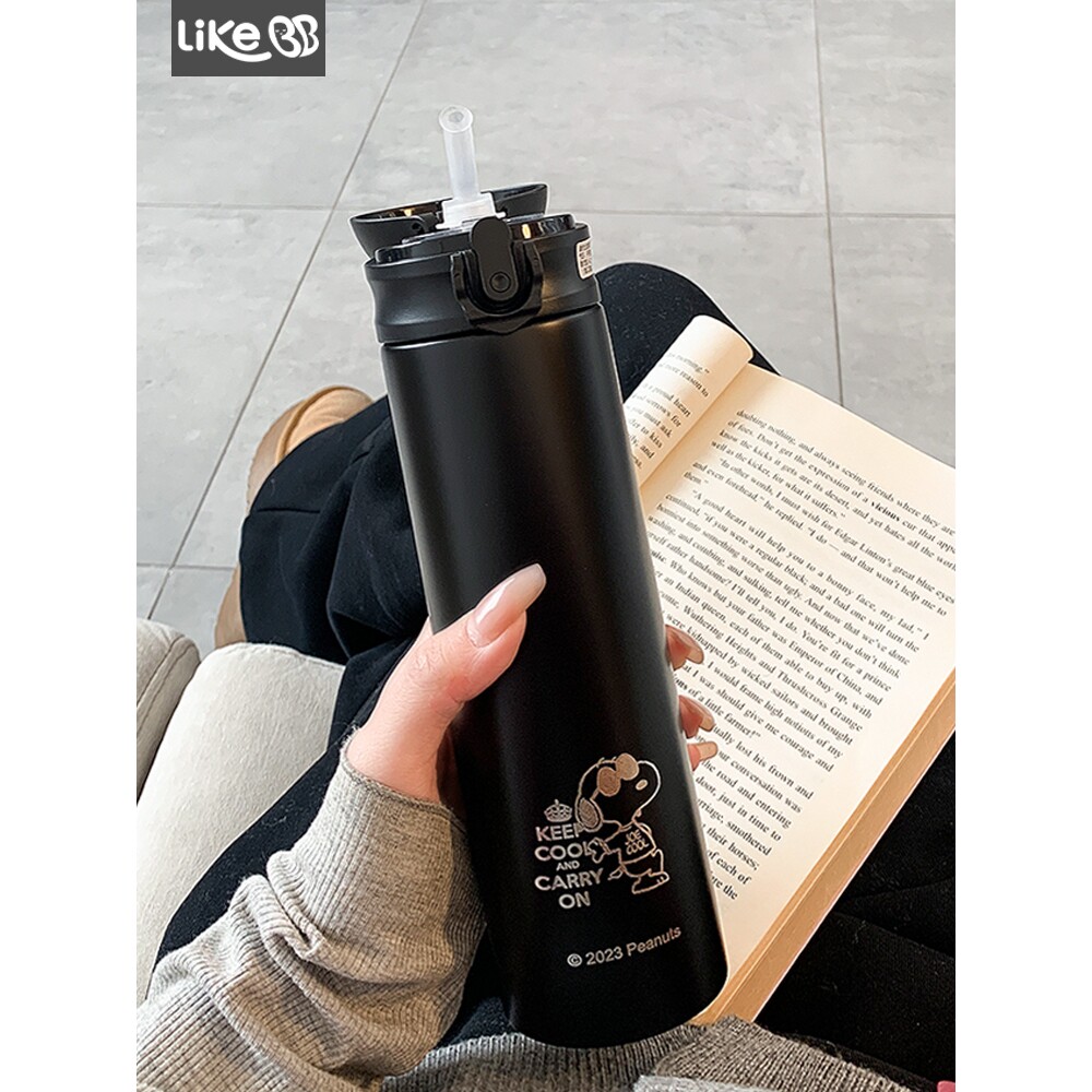 日本进口史努比吸管杯保温杯子女高颜值便携学生水杯新款2025