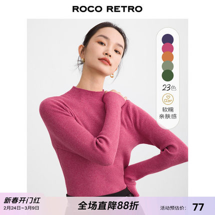 【超值精选】树莓色半高领针织衫修身打底衫春季慵懒风毛衣上衣
