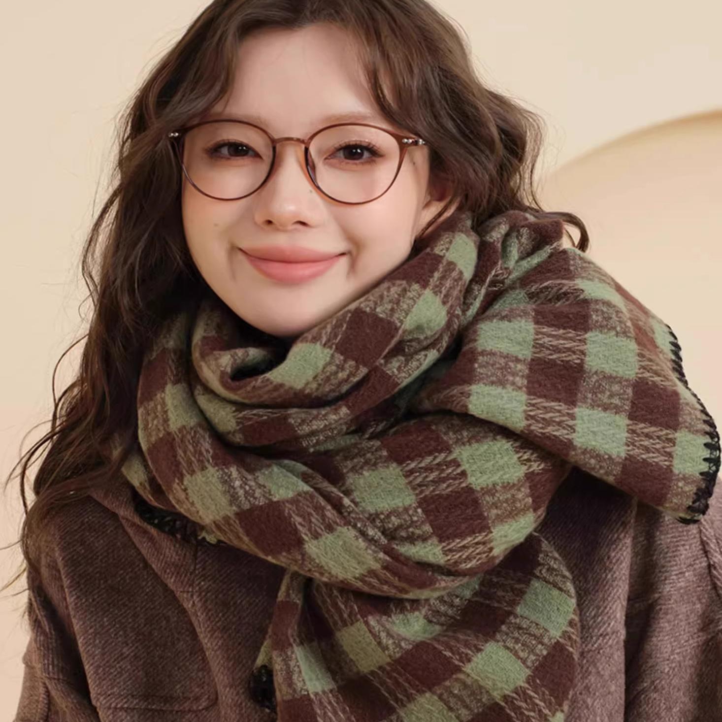 CACUSS围巾女秋冬棋盘格子撞色韩版百搭披肩保暖围脖闺蜜生日礼物