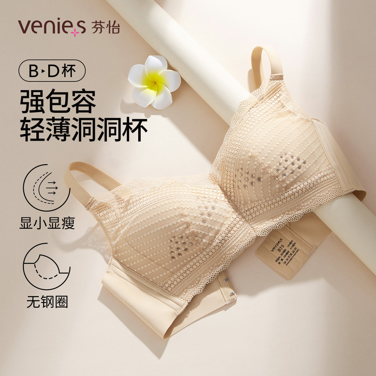 芬怡洞洞杯大胸显小超薄内衣女无钢圈大码全罩杯无海绵文胸