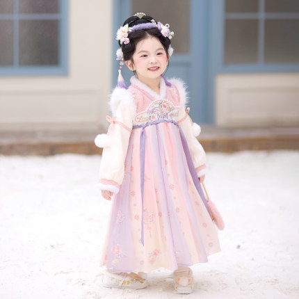 汉服女童冬款2025新款儿童古风仙气加绒连衣裙女宝宝表演公主襦裙