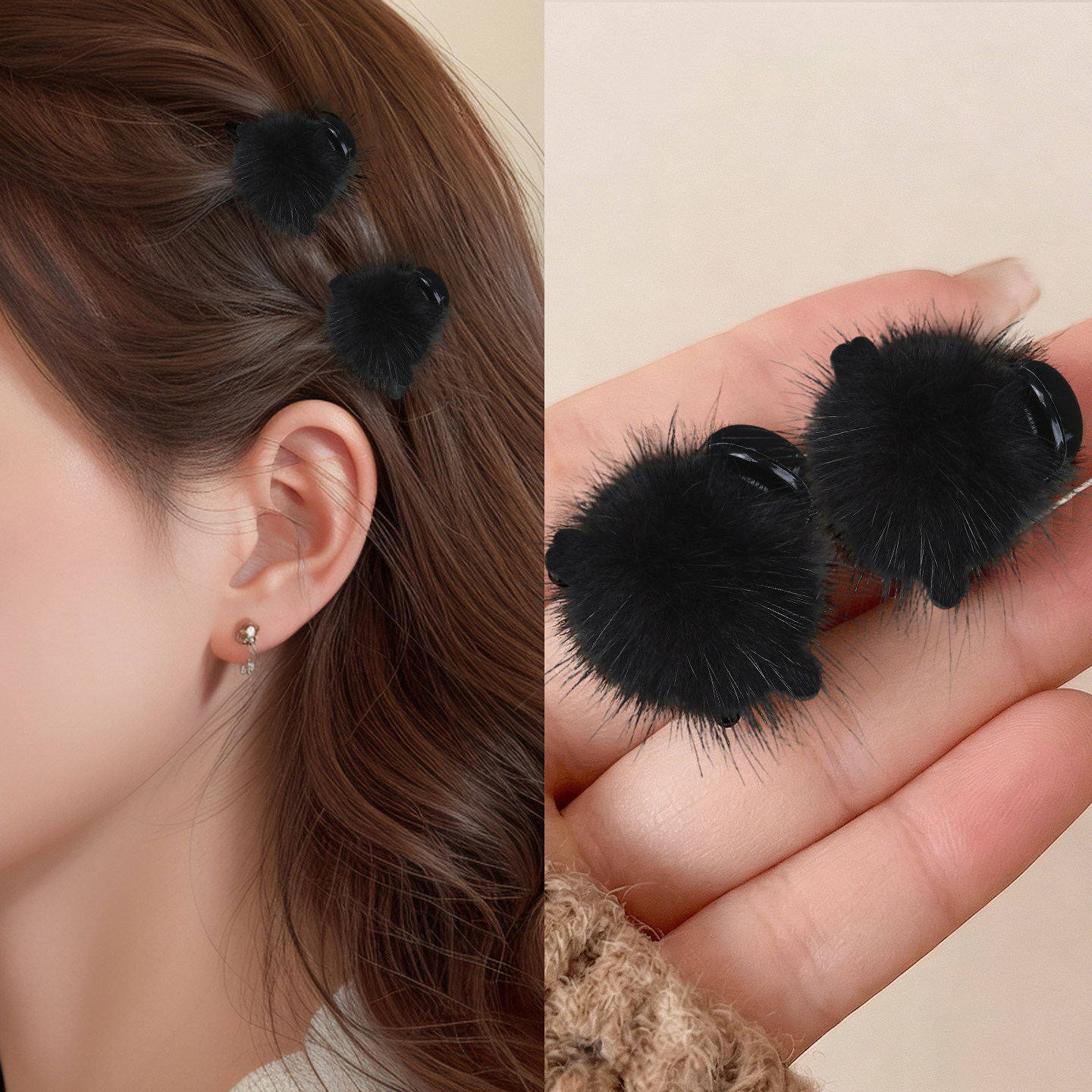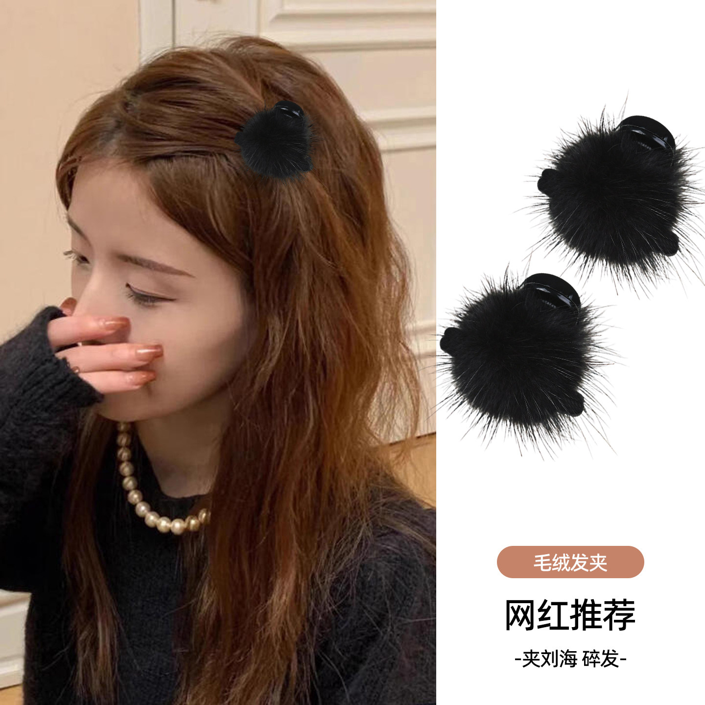 绝美侧边小发夹精致小夹子刘海前额碎发毛绒小抓夹毛毛球头饰发卡