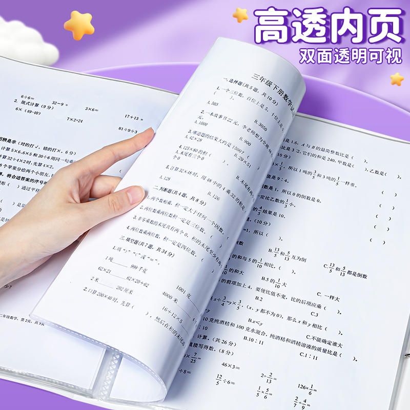 A4文件夹资料册试卷收纳袋奖状收集册透明插页活页小学生专用多层产检乐谱夹学生装卷子学习装订加厚整理神器