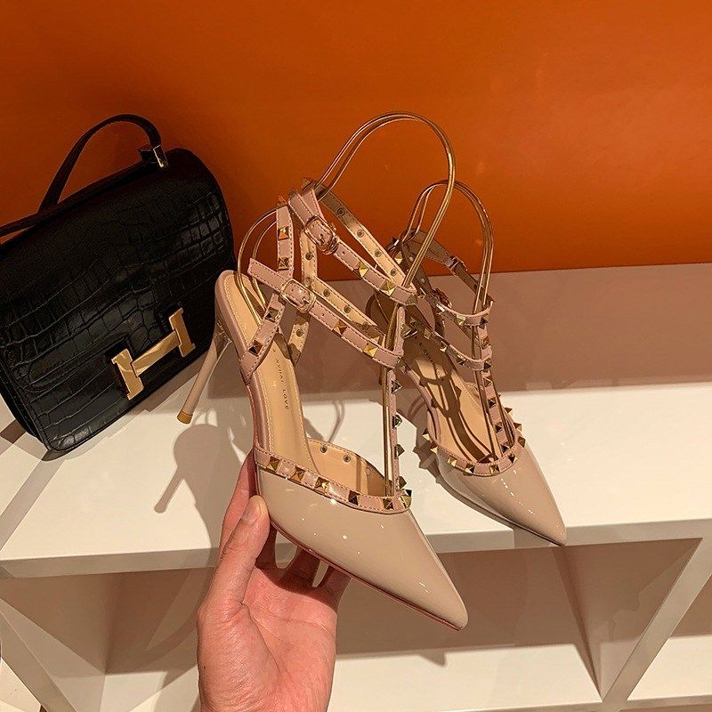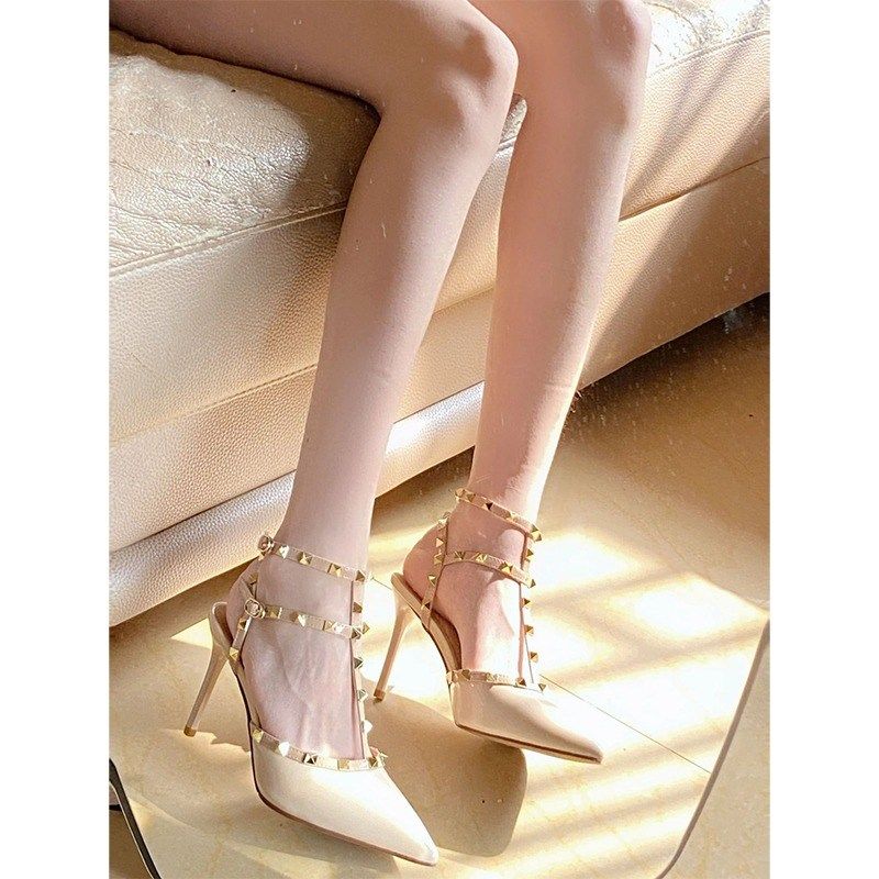铆钉高跟鞋女2024年夏季新款尖头细跟白色柳丁不累脚网红凉鞋单鞋