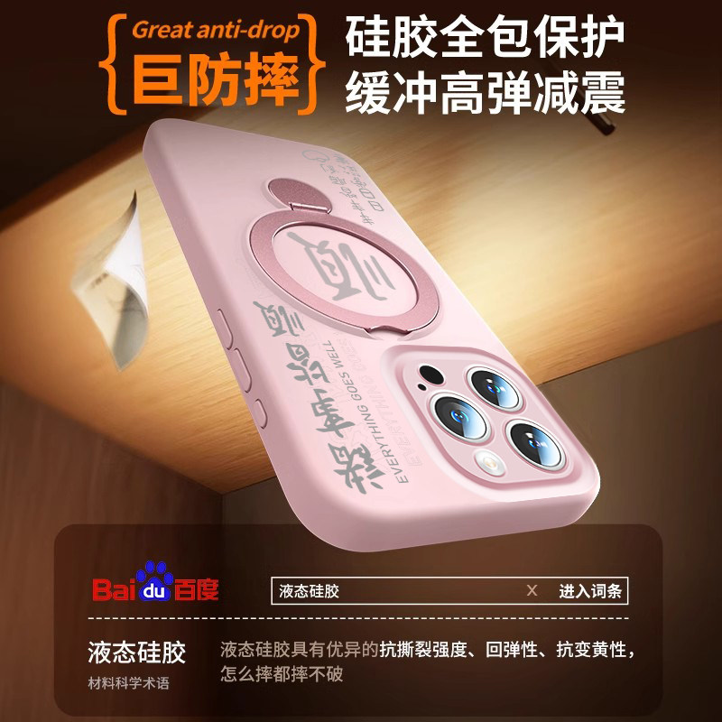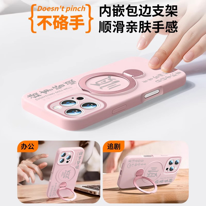 360支架-诸事皆顺适用苹果16pro手机壳iphone16promax新款16液态硅胶MagSafe磁吸15p保护套13全包防摔14挂绳
