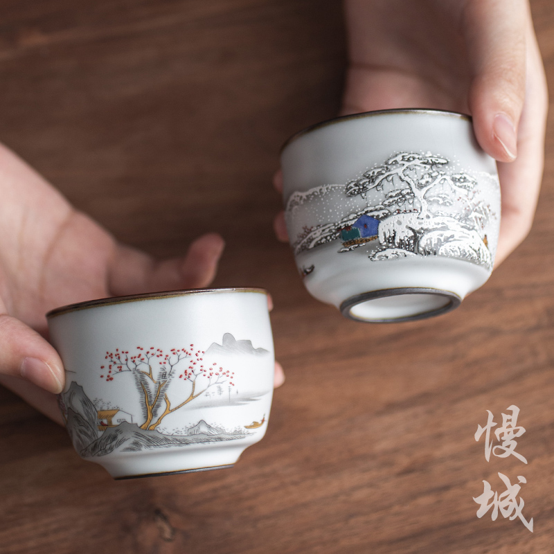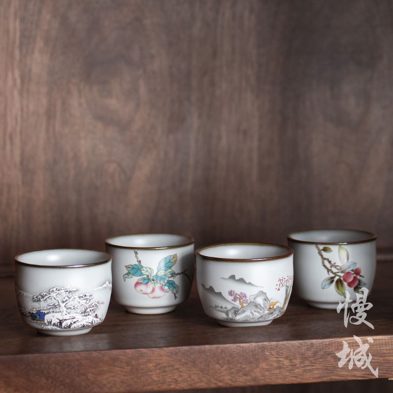 慢城 铁胎汝窑品茗杯陶瓷开片可养单杯家用功夫茶具主人杯个人杯