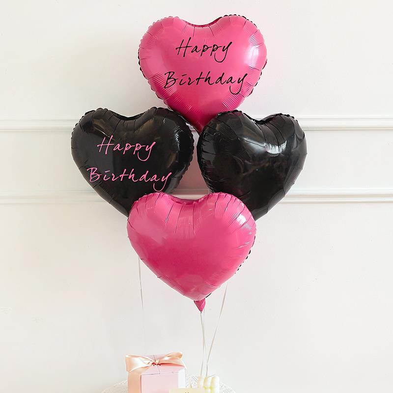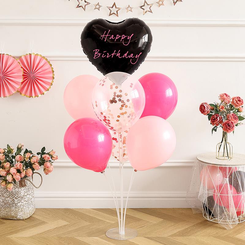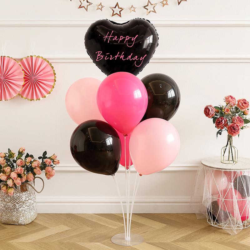网红生日布置桌飘气球派对快乐黑玫红主题仪式感桌面摆件场景装饰