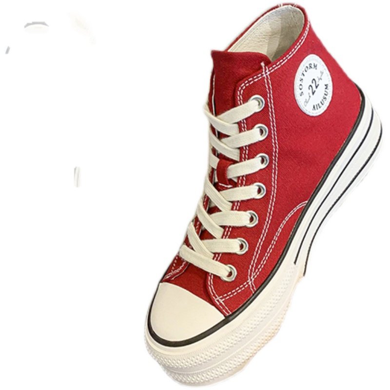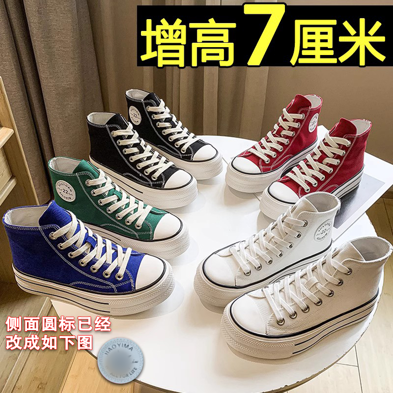 帆布鞋女红色休闲厚底2025秋季百搭高帮小个子内增高小白鞋潮板鞋