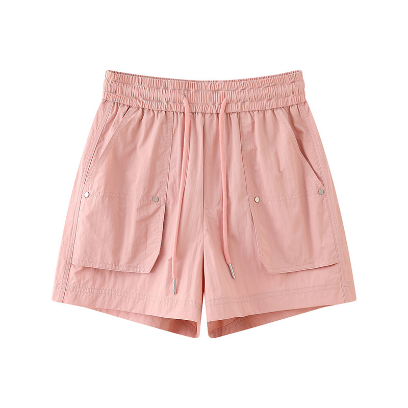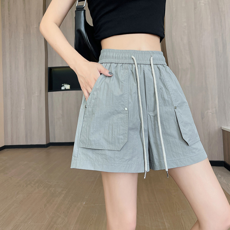 冰丝速干工装短裤女松紧腰夏高腰显瘦A字阔腿小个子外穿辣妹热裤