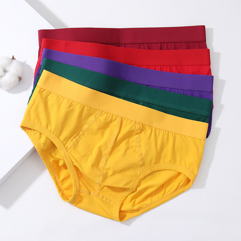 真维斯马年男士三角内裤男本命年酒红色裤头男生紫红新款属马短裤