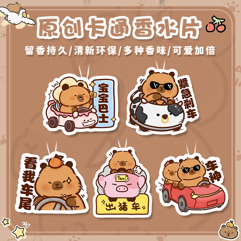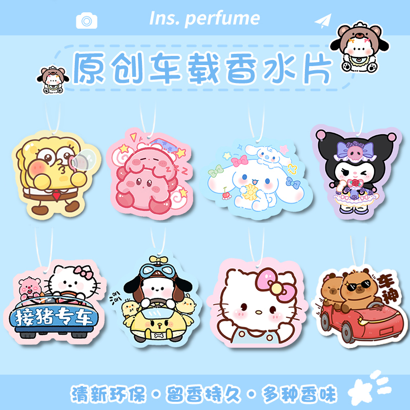 新款卡通车载香薰挂件香片汽车香水持久淡香氛车内除异味车用挂饰
