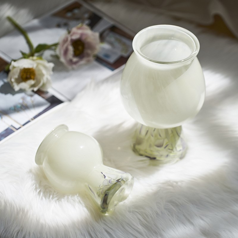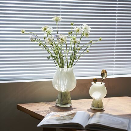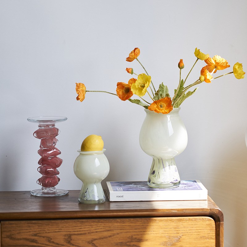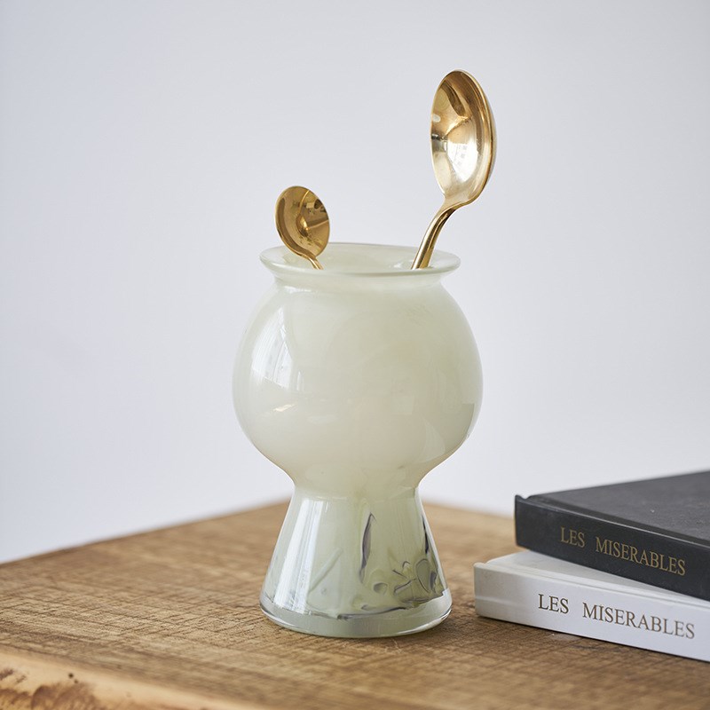简约现代质感迷你玉质中古奶油风高脚花瓶家居软装商品插花器摆件