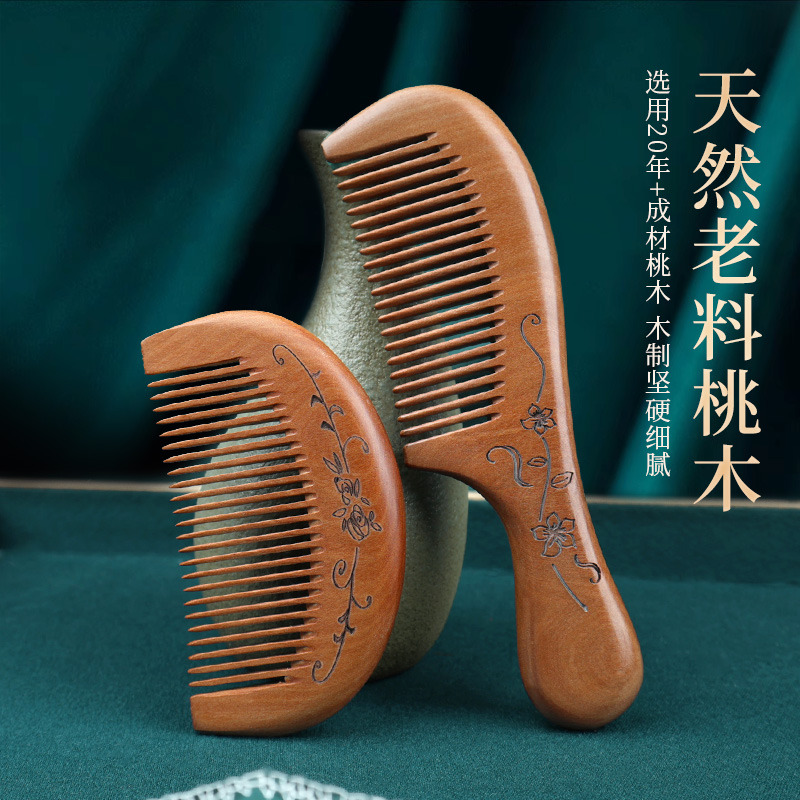 美木兮桃木梳天然正品家用女士长发专用实木便携男生生日礼物梳子