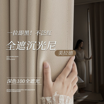 全遮光纯色成品窗帘奶茶色挂钩客厅卧室阳台飘窗出租房便宜防晒布
