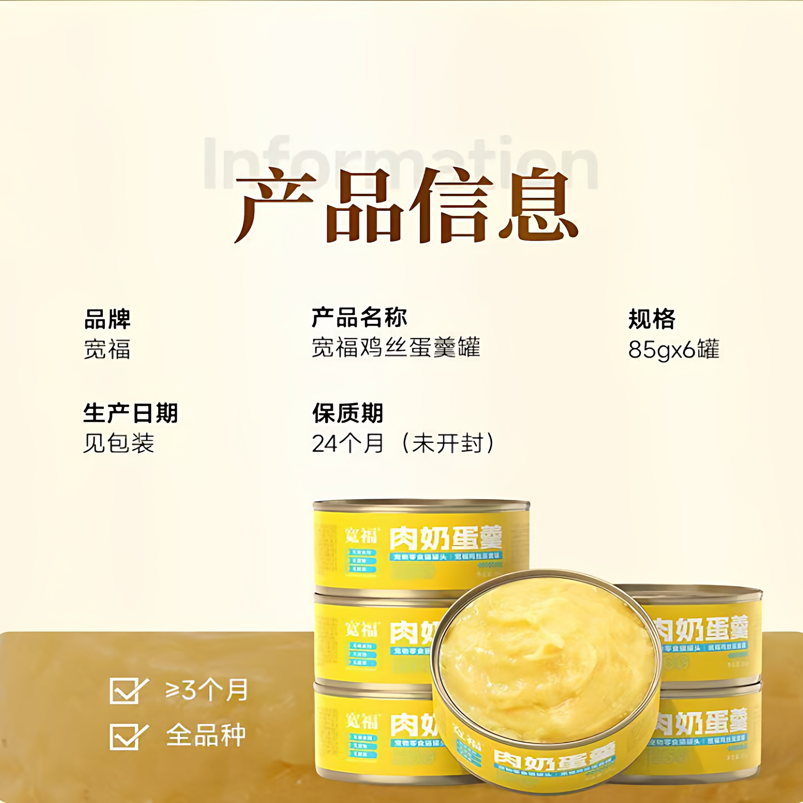 宽福肉奶蛋羹猫罐头鸡蛋鸡肉蛋白[新老包装随机发]85g*12罐24罐