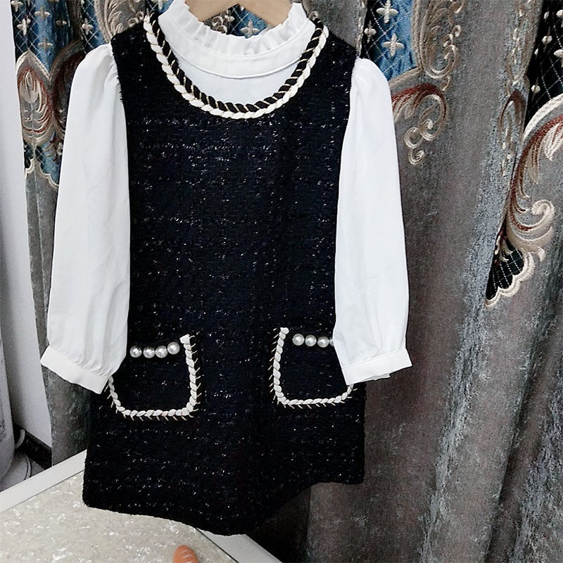 女童连衣裙秋冬小香风编织背心裙洋气公主马甲裙2025新款中大童