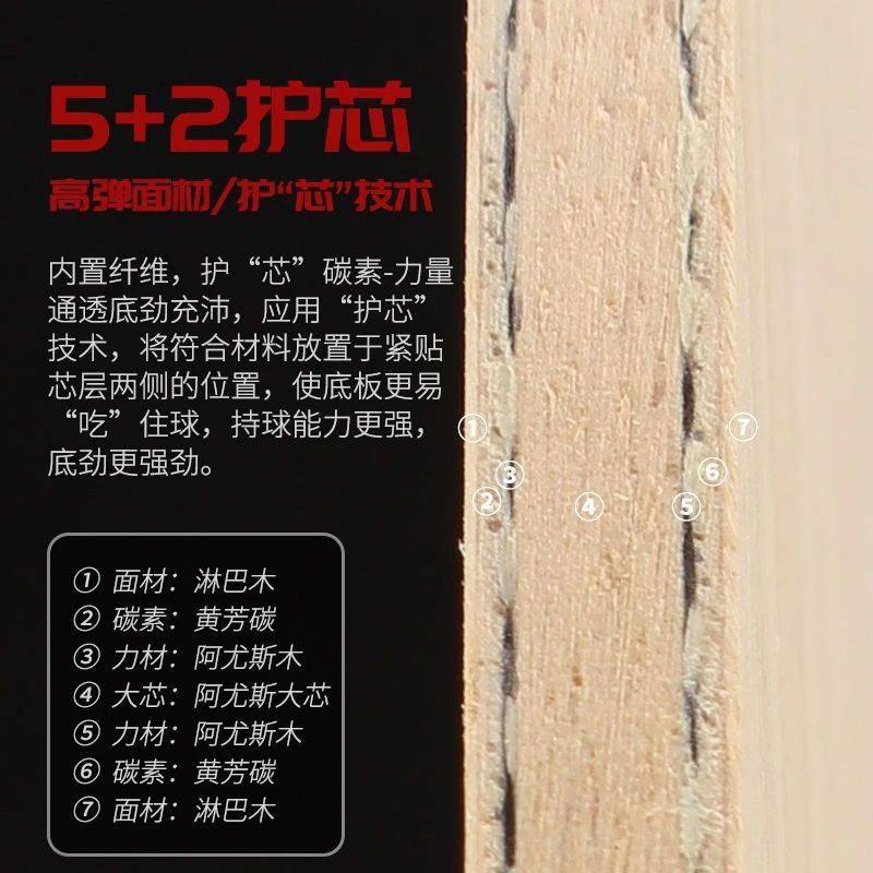 龙5 狂飙龙5X红双喜乒乓球专业底板5+2七层芳碳乒乓球拍