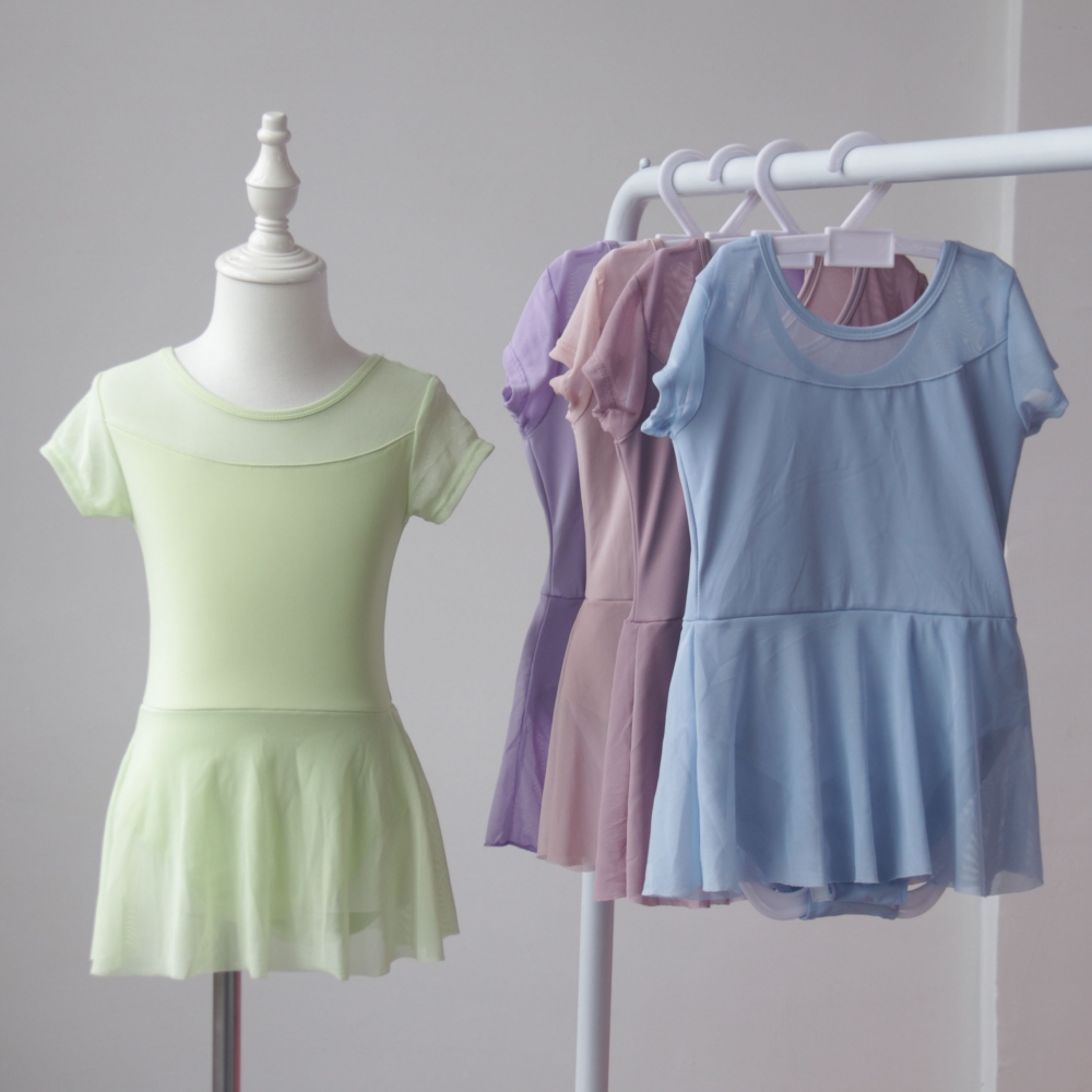 锦纶儿童舞蹈服女童夏季短袖练功形体服开档女孩中国舞芭蕾连体裙
