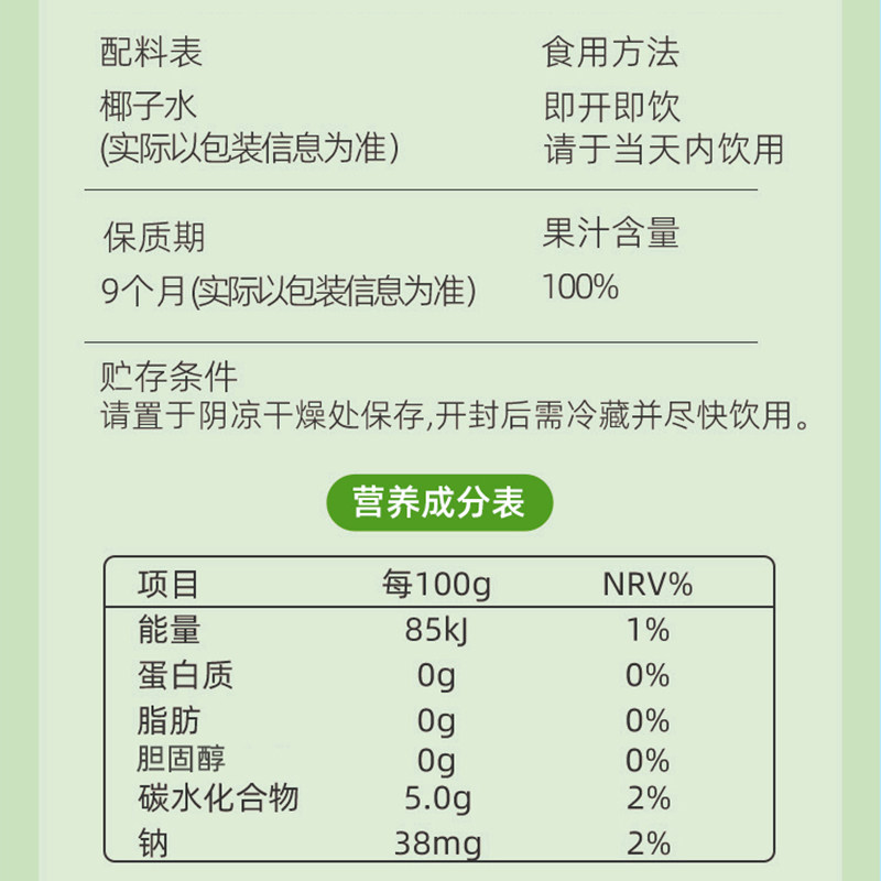 椰谷椰子水358ML*12瓶含电解质微甜沁爽果汁无防腐剂椰青椰汁饮料