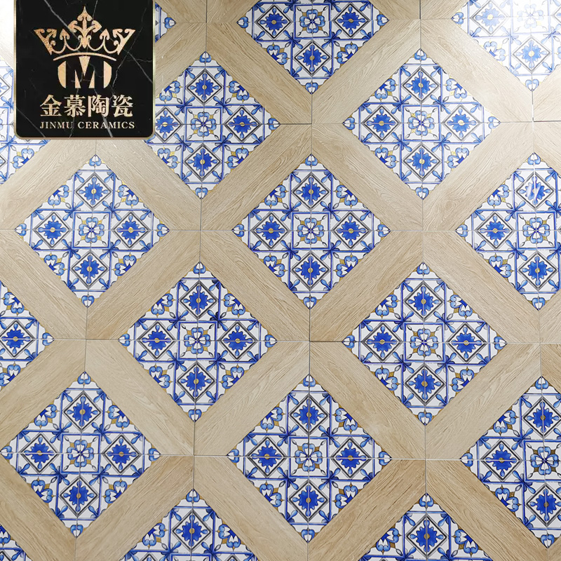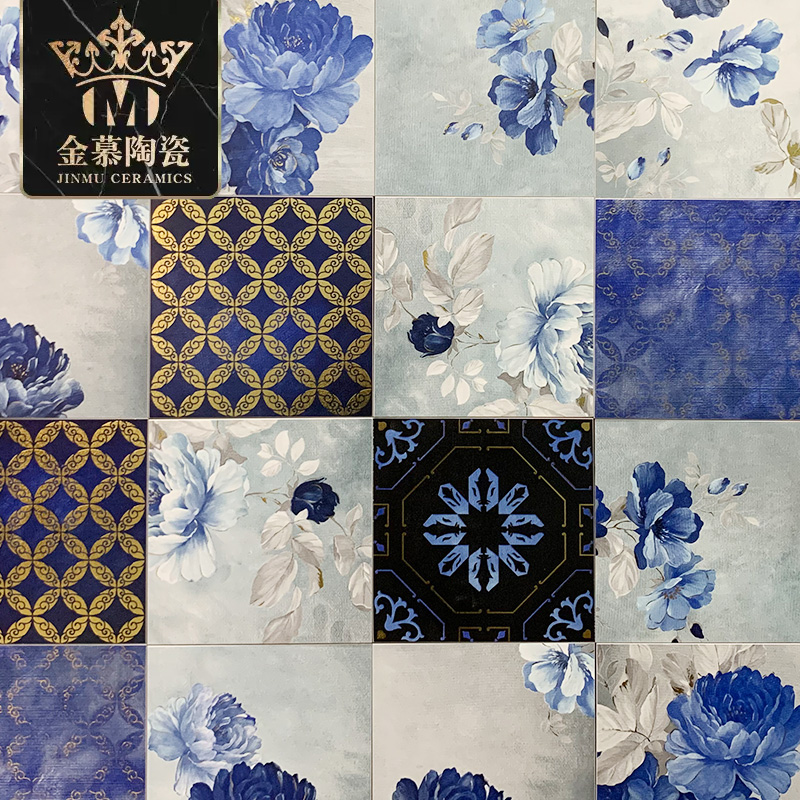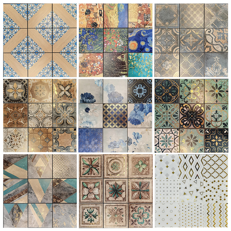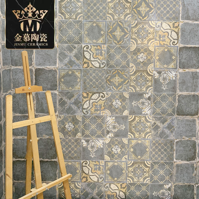 镀金色墙地面瓷砖中古风东南亚风仿古厨房卫浴小花砖地砖200X200
