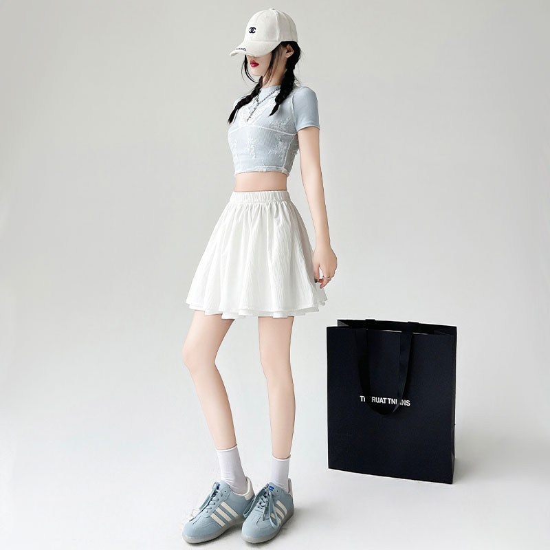 白色甜辣蛋糕裙女春夏季2025新款高腰半身裙小个子防走光a字短裙