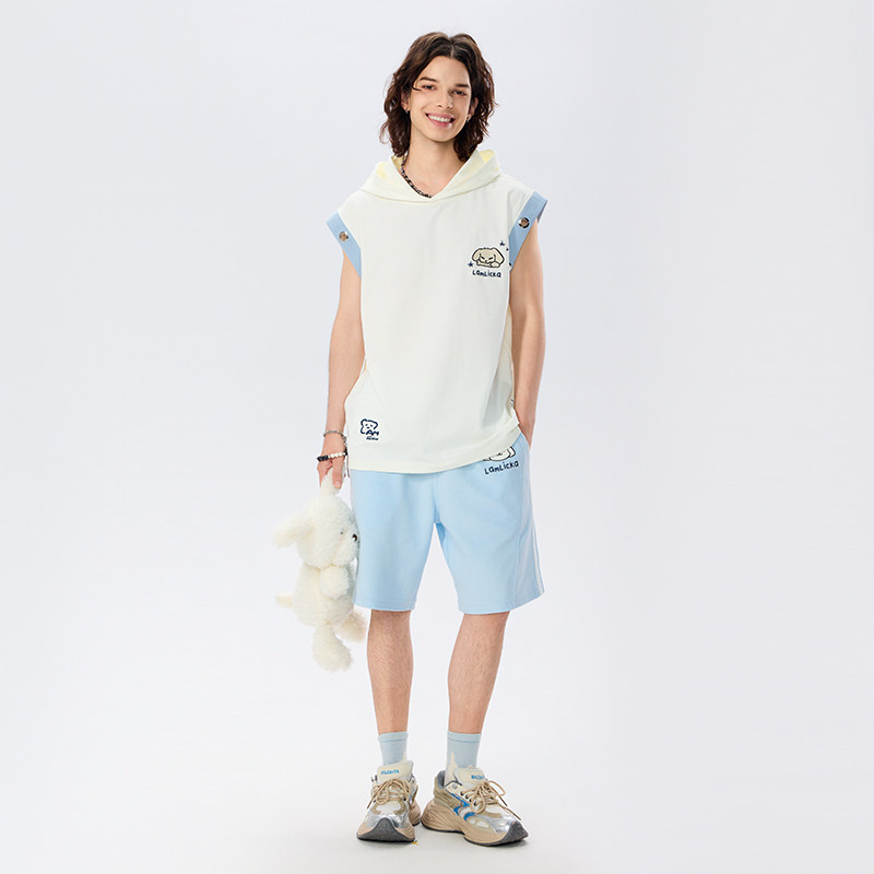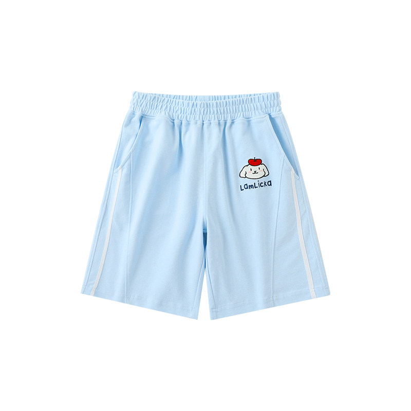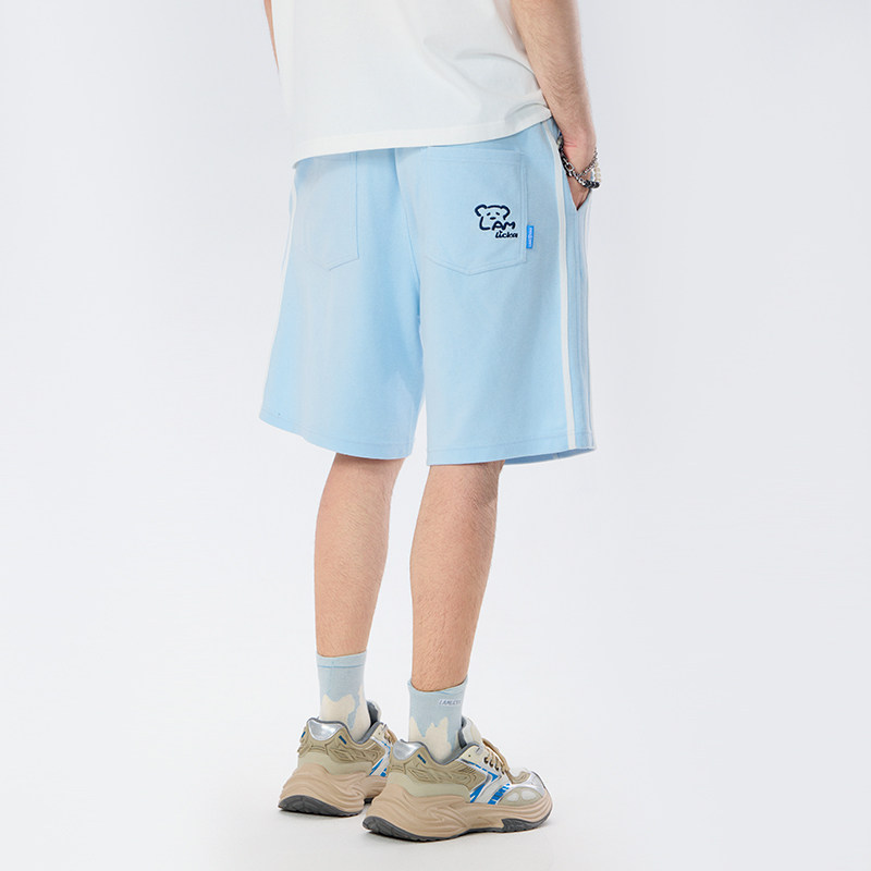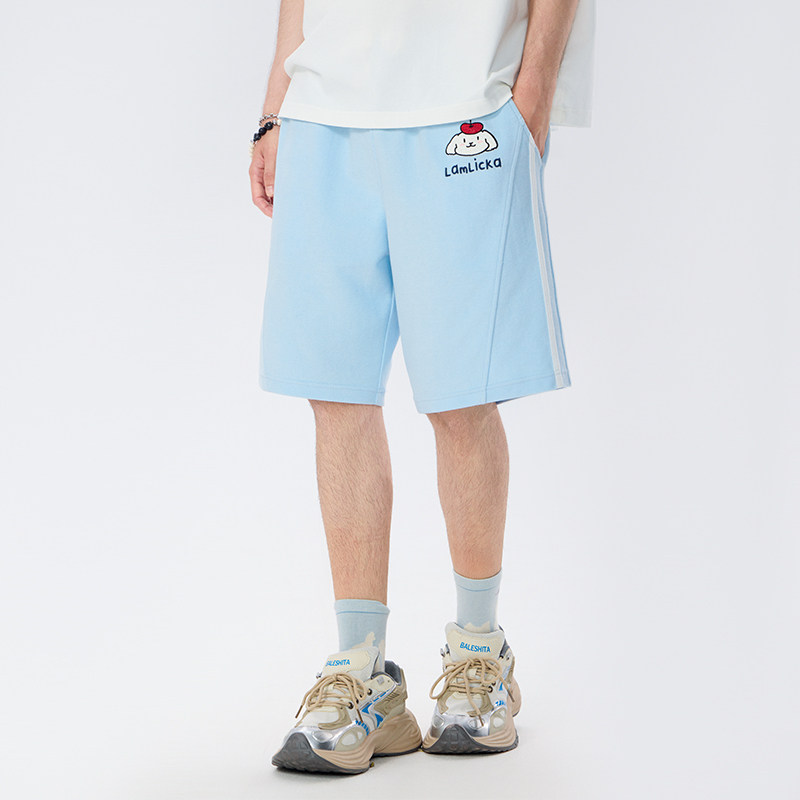 LAMLICKA拼接蓝色狗狗短裤男夏季美式潮牌休闲宽松直筒运动五分裤