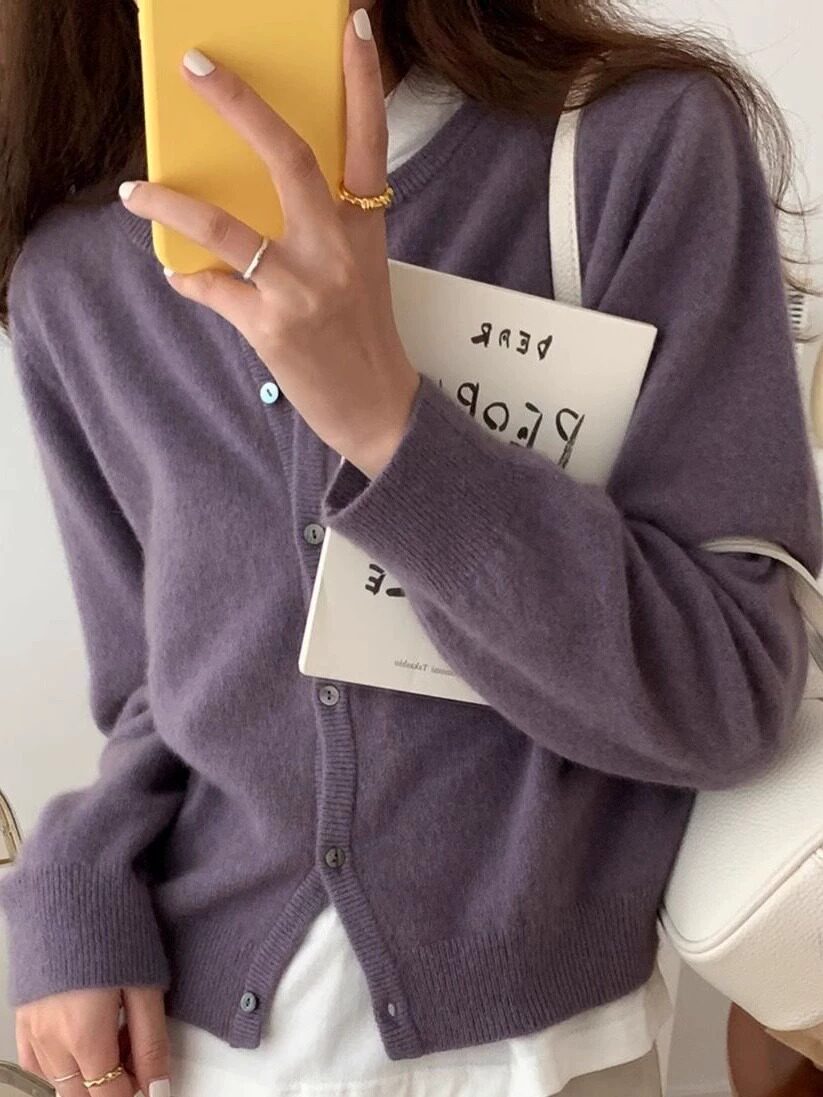 羊绒开衫女圆领针织毛衣外套秋冬新款宽松百搭短款显瘦打底羊绒衫