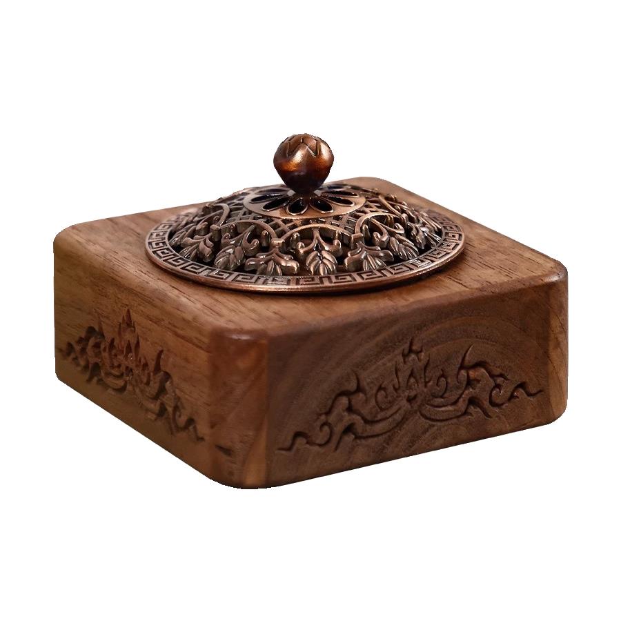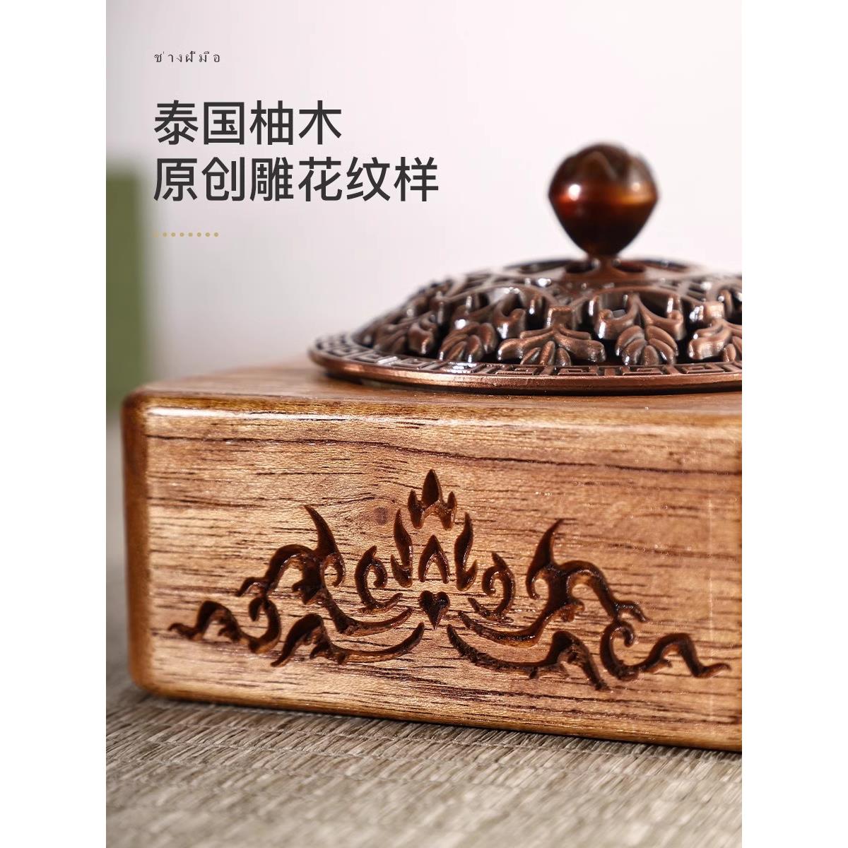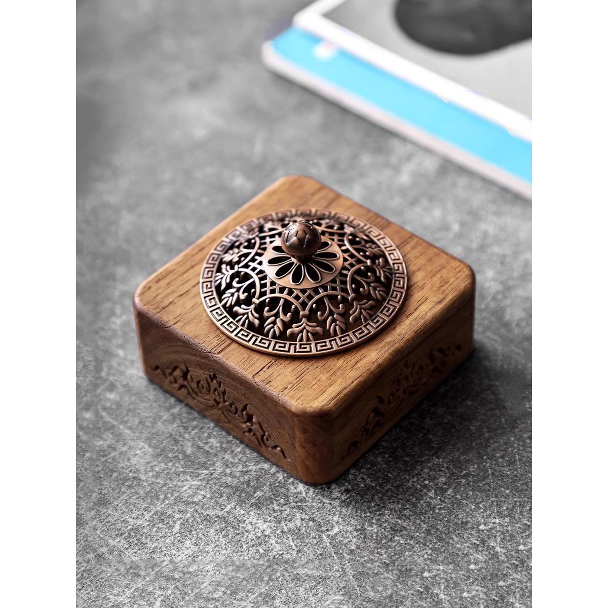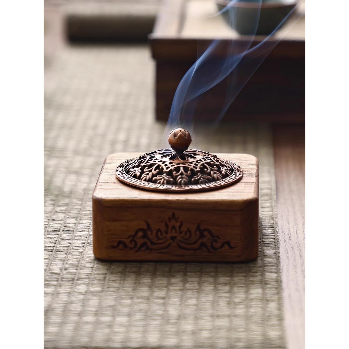 中式实木香炉家用室内茶道香薰炉线香禅意檀香熏香炉盘香香座香托