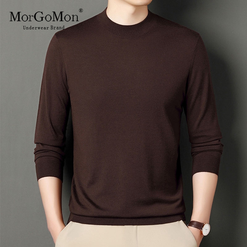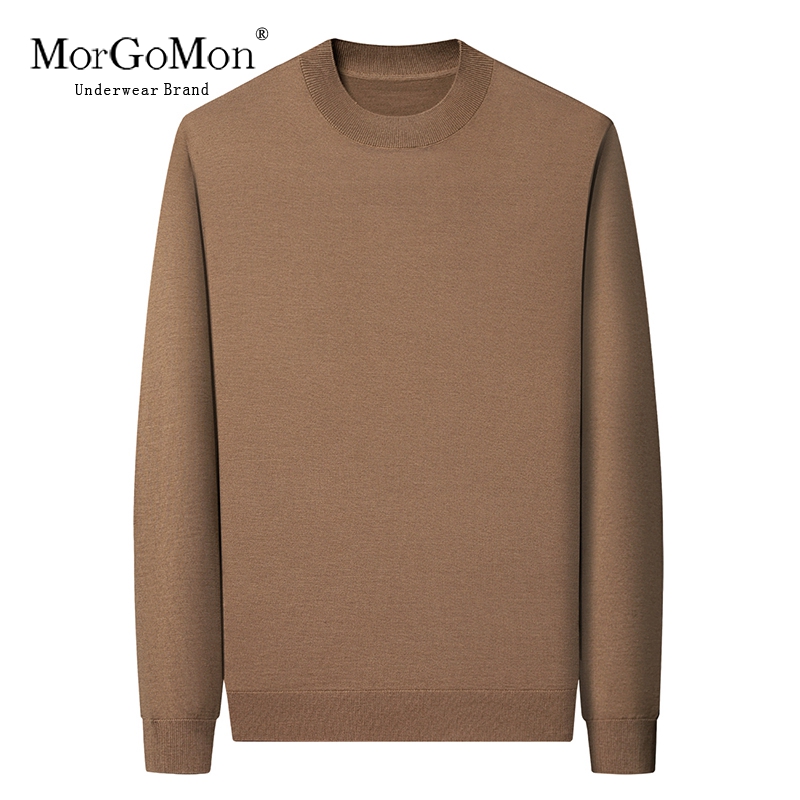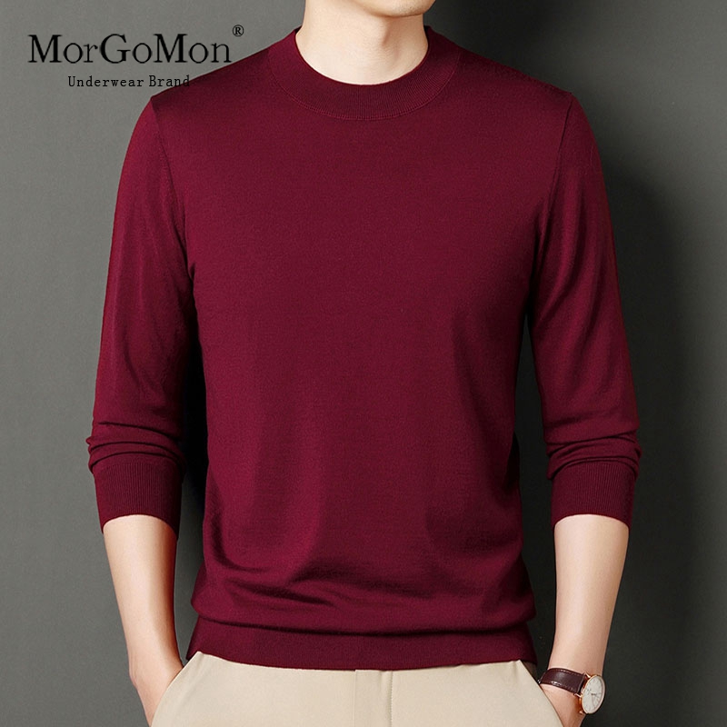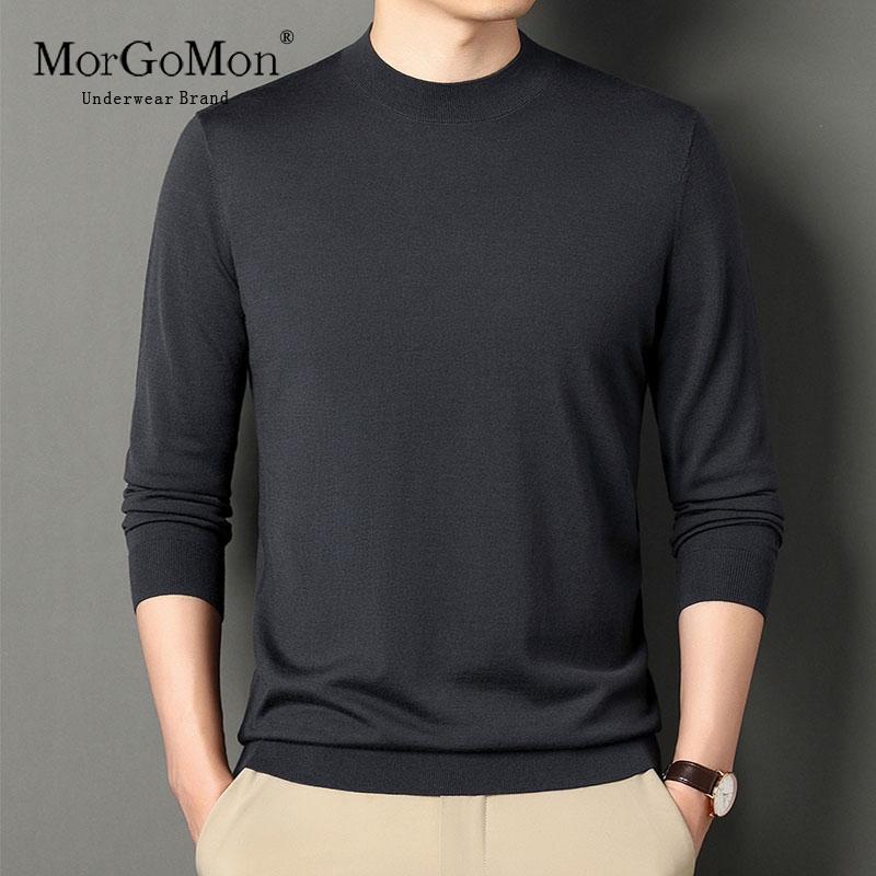 MORGOMON慕格蔓羊毛衫男圆领超薄精纺秋冬贴身纯色羊毛男士打底衫
