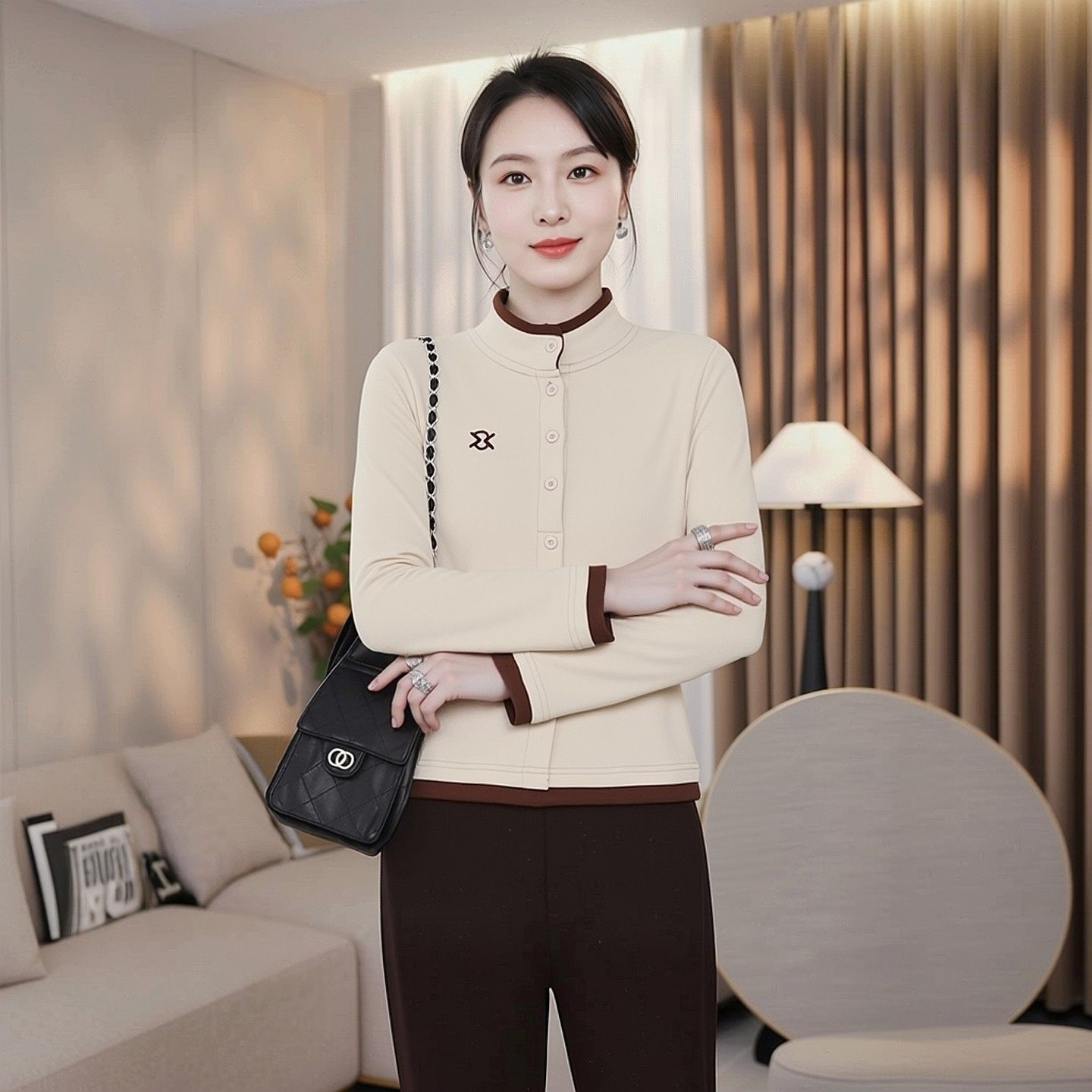 宽松妈妈半开领长袖上衣大码胖mm200斤立领品牌德绒假两件卫衣女