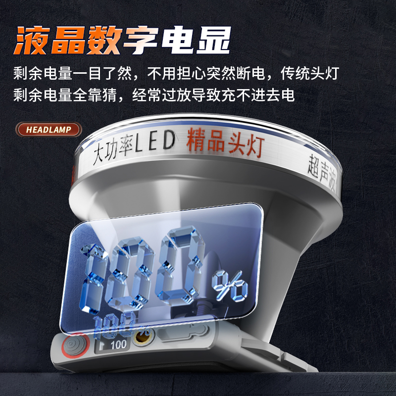 德国2025新款强光头灯充电超亮感应夜钓鱼专用超长续航头戴式照灯