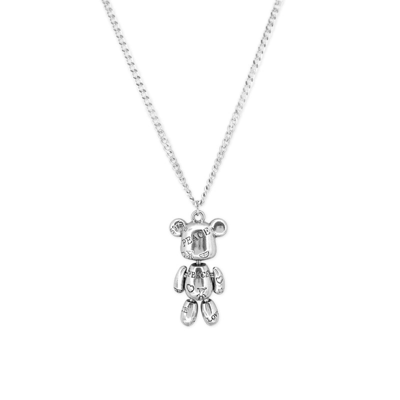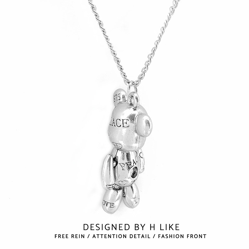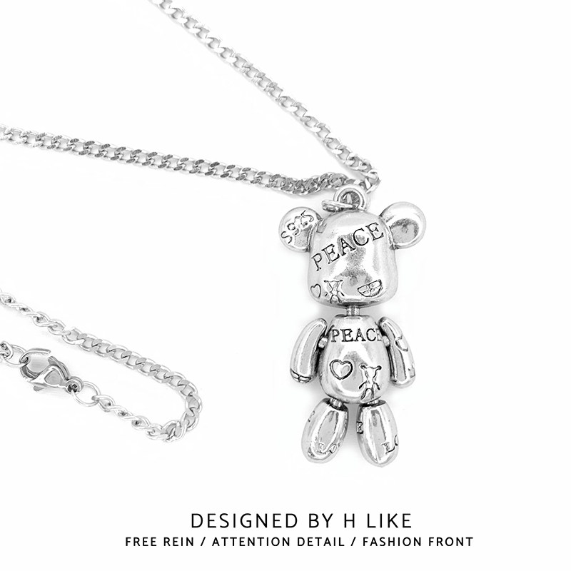 欧美网红小熊嘻哈潮酷项链吊坠饰品不掉色钛钢情侣男女小众毛衣链