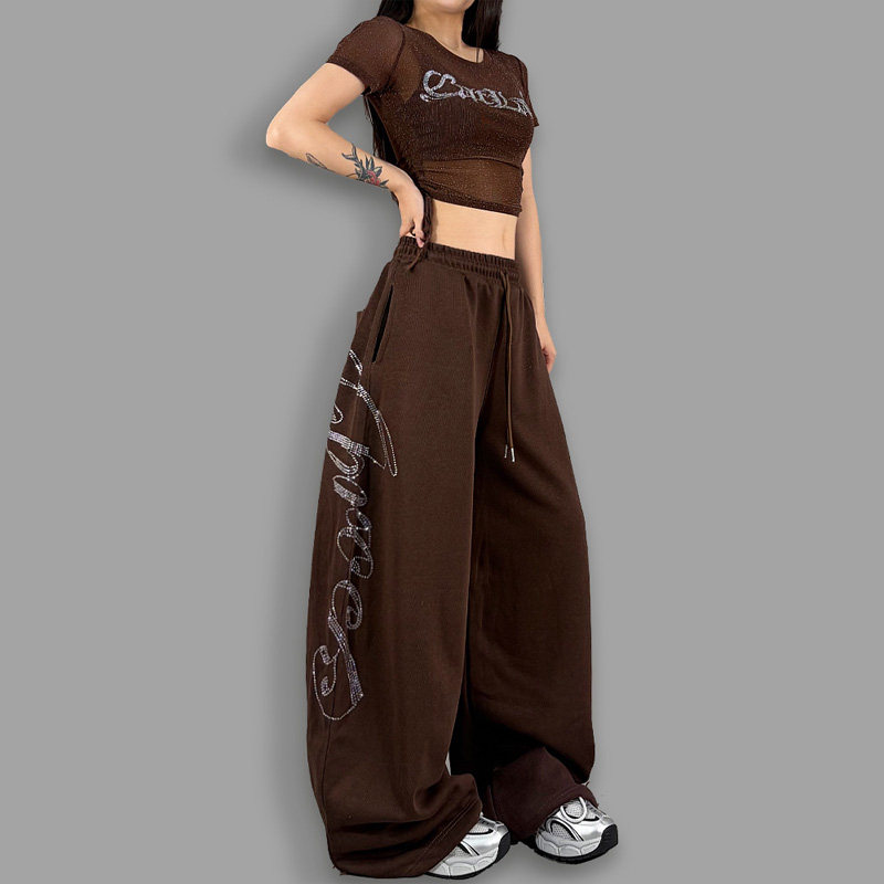 ROKBBK-K/布韩美式嘻哈风烫钻阔腿裤女街舞个性宽松休闲裤潮流