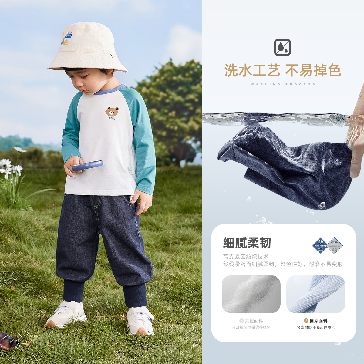 [抗菌防褪色]男童软牛仔裤宝宝时髦长裤秋季儿童裤子2025新款男孩