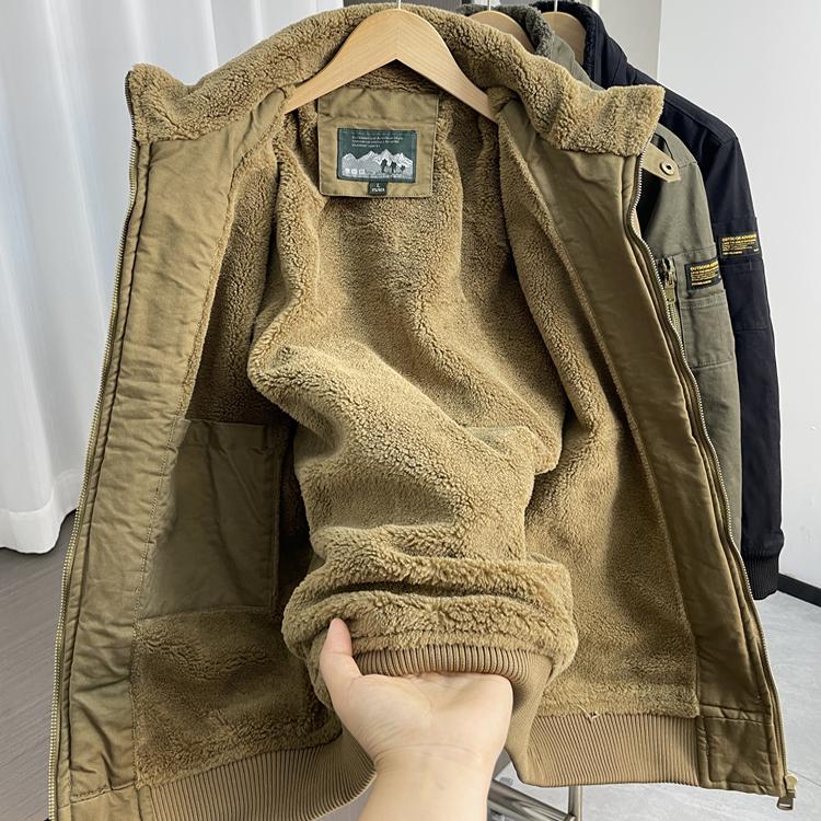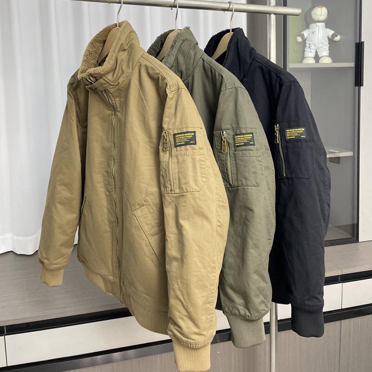 美式复古!加绒保暖!外贸男装秋冬百搭立领加厚工装休闲夹克外套