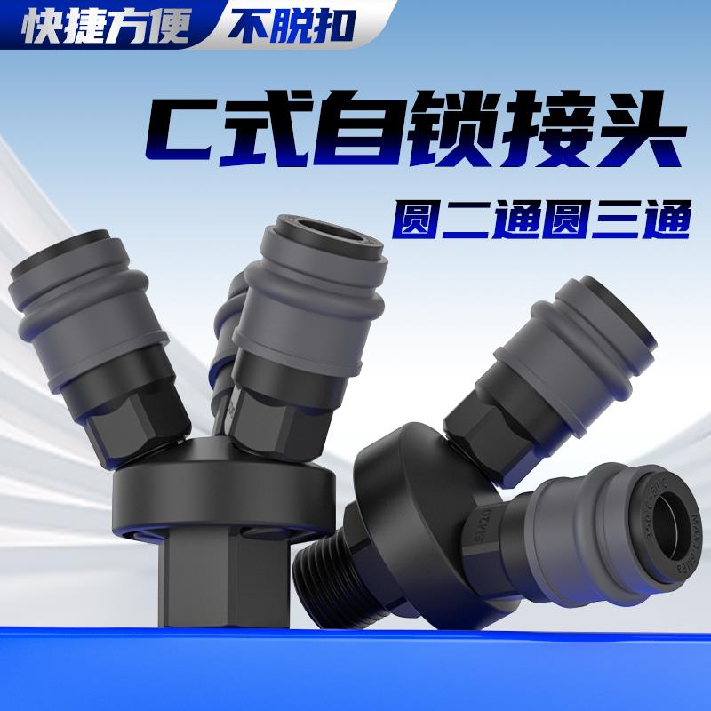 气动空压机气泵配件大全圆二通SMY气管三叉圆三通C式自锁快速接头