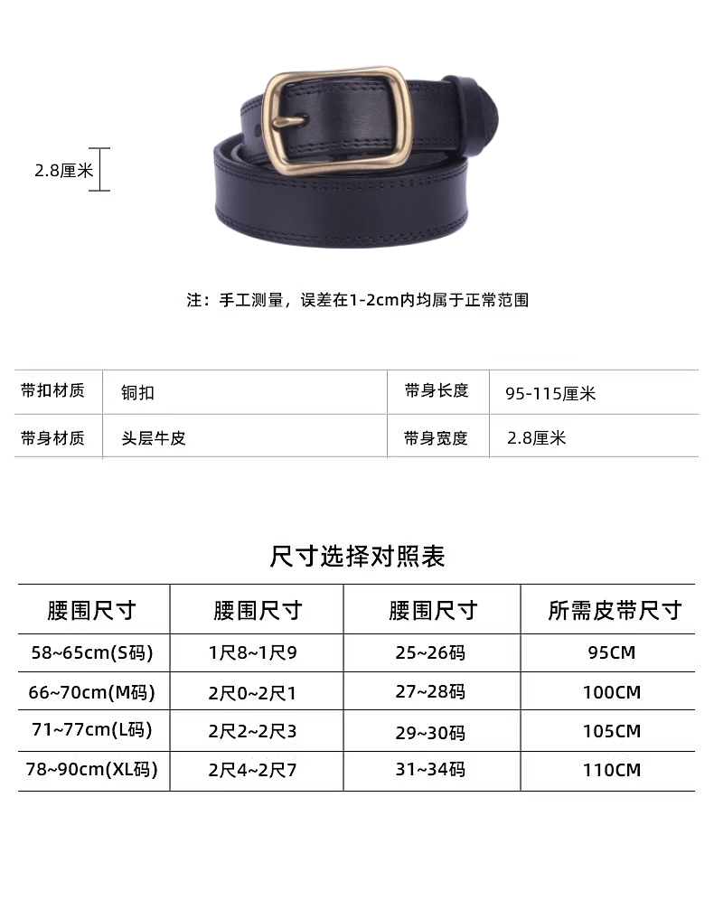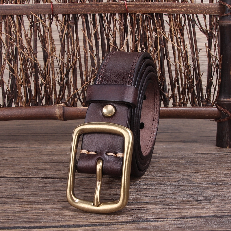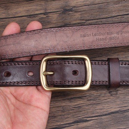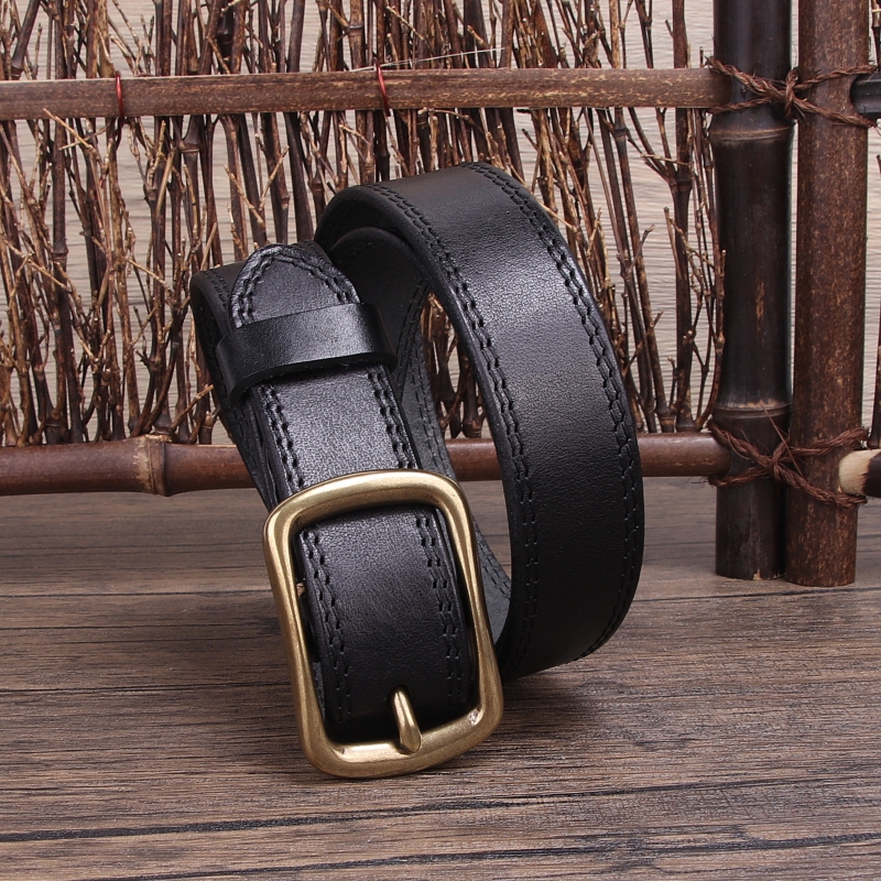 铜扣皮带女真皮 头层纯牛皮手工复古ins风潮百搭牛仔裤腰带软裤带