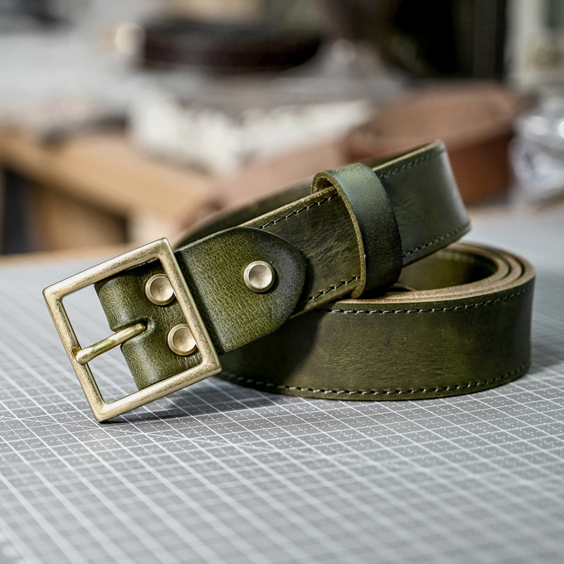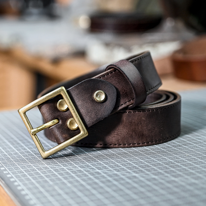 做旧式头层牛皮腰带纯铜扣真皮复古男士工装皮带3.3车线牛皮裤带