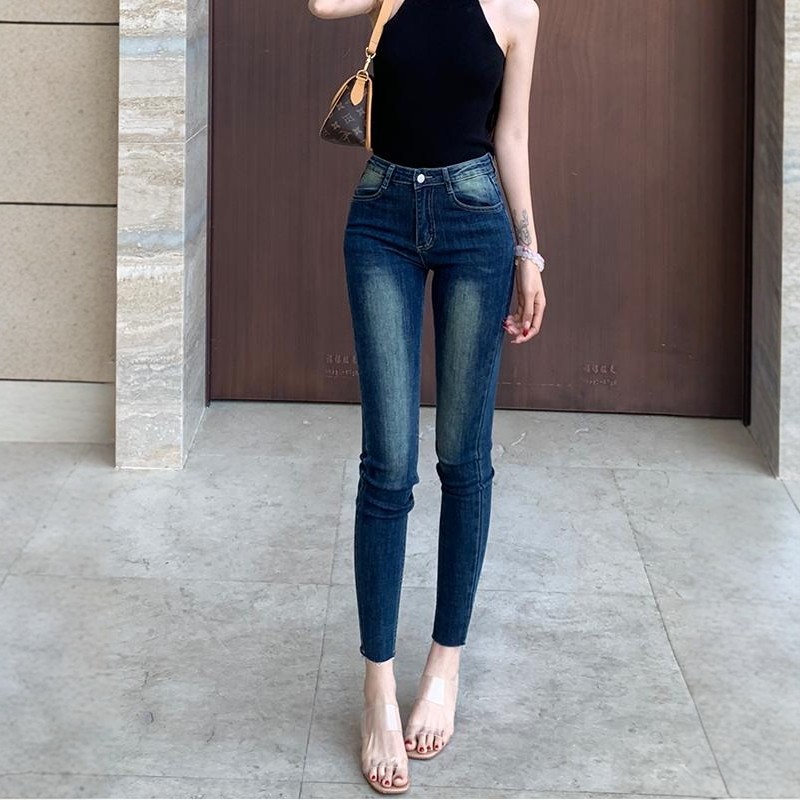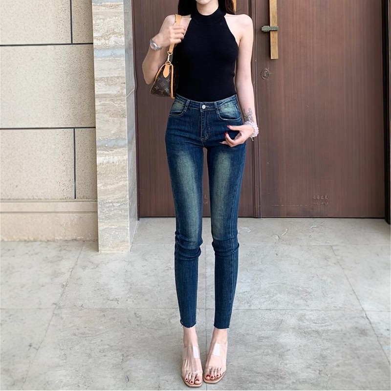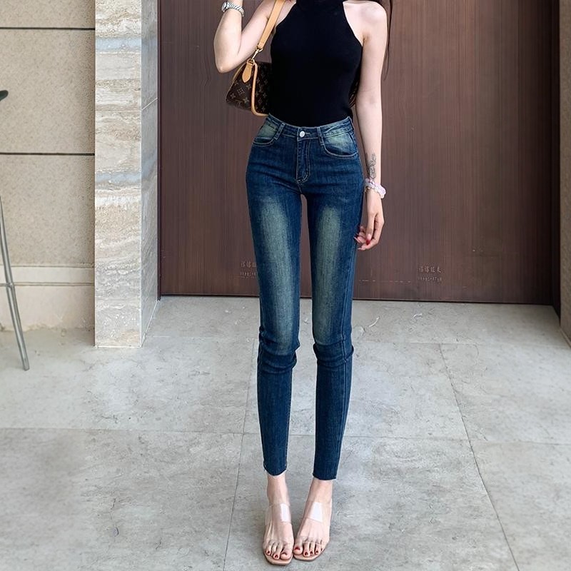 复古磨白高腰小脚加绒牛仔裤女2025年冬季新款紧身显腿细铅笔长裤