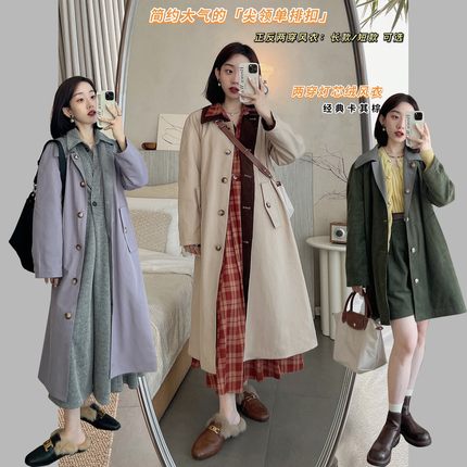【双重奏】风衣女款2023新款中长款加厚灯芯绒外套小个子正反两穿