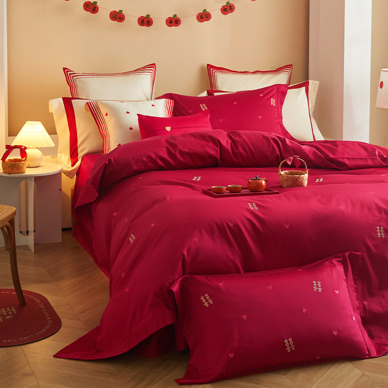 多喜爱结婚四件套纯棉60S全棉床单被罩红色婚庆套件新婚床上用品