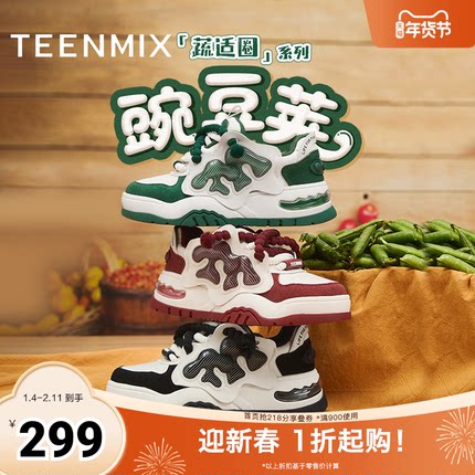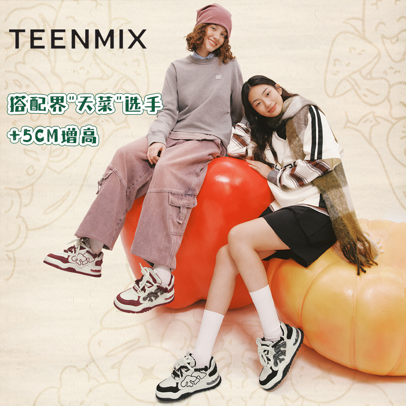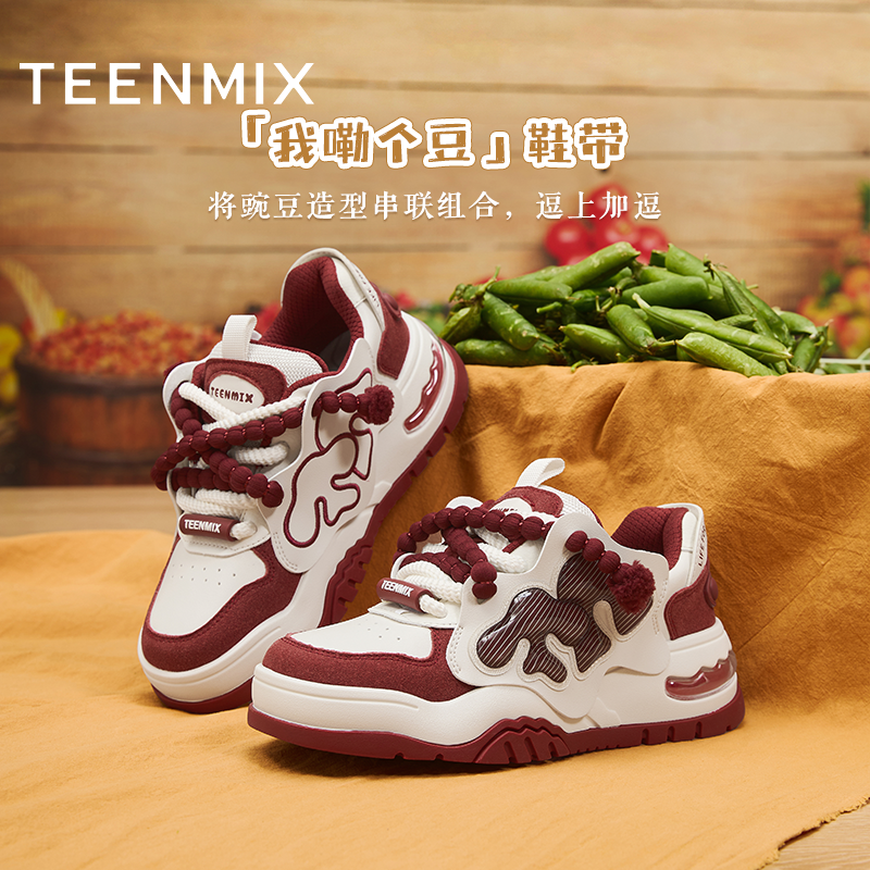 天美意蔬适圈休闲豌豆荚厚底面包小白鞋女加绒运动板鞋2025秋新款