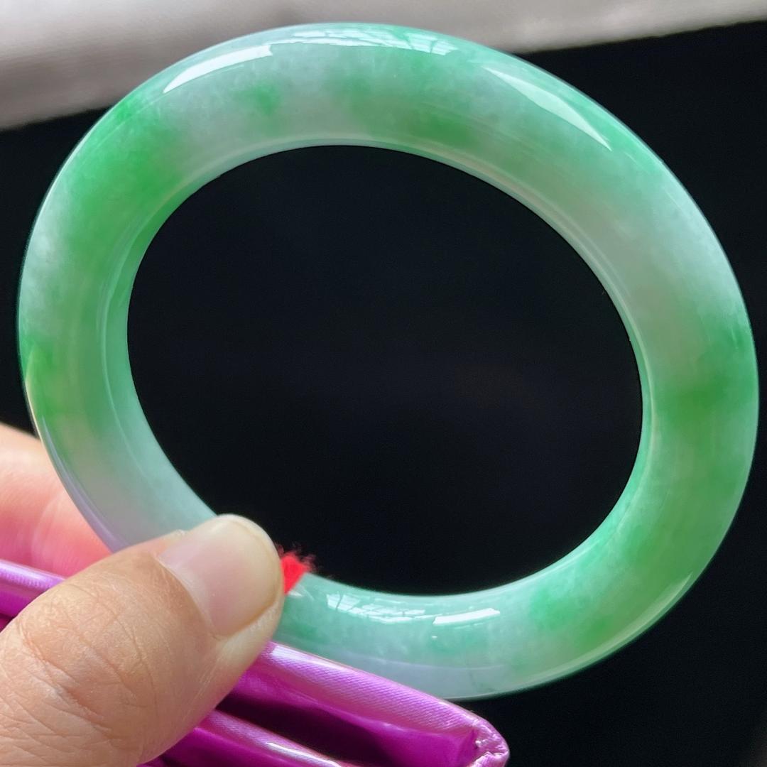 缅甸翡翠玉手镯福镯圆条54圈口天然玉石A货冰糯种飘绿礼物1003