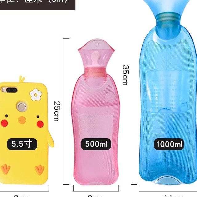 加厚注水小长条热水袋PVC高密度暖手袋长条热水袋暖宫热水袋1L