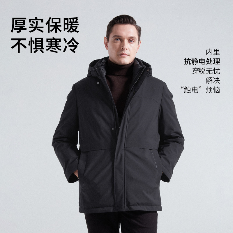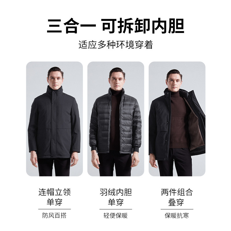 杉杉羽绒服男士2025冬季新款三合一连帽可拆内胆鸭绒加厚商务外套