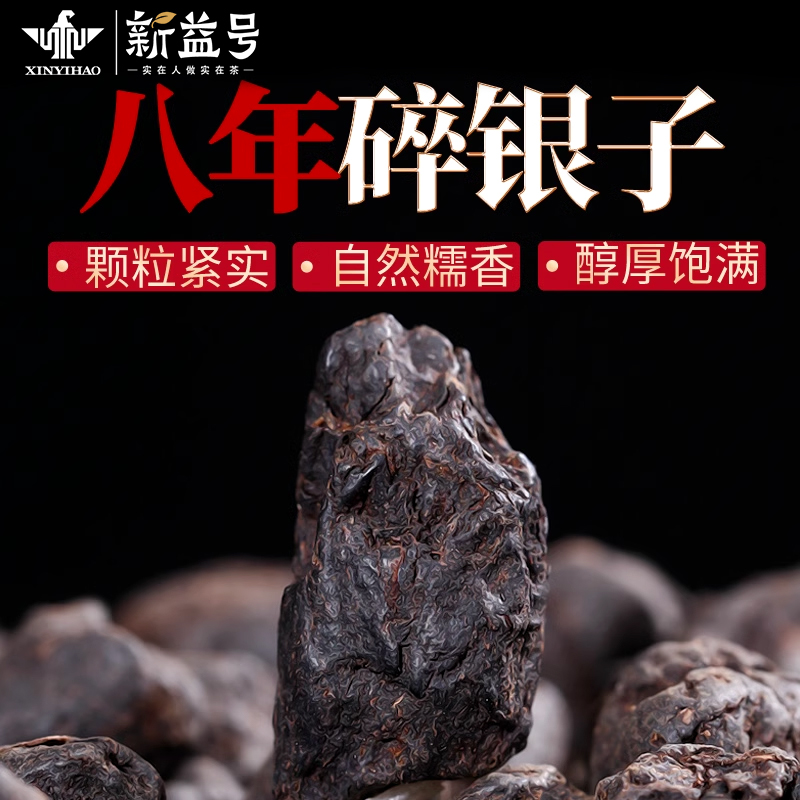 普洱茶熟茶新益号云南勐海八年以上特级糯米香碎银子化石散装茶叶