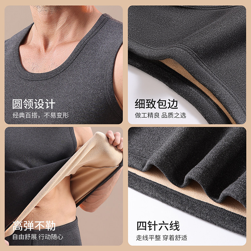 猫人男士保暖背心加绒加厚羽绒蚕丝秋冬季秋衣男款内搭打底衫上衣