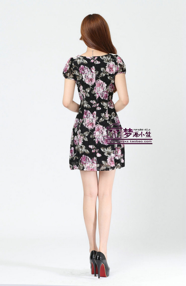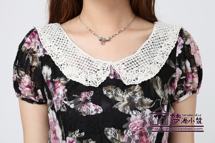 亏本清仓撤柜甜美浪漫蔷薇花朵钩花娃娃领蕾丝修身显瘦短袖连衣裙